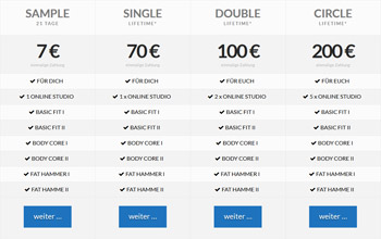 Möchtest Du mit Deinem Partner zusammen trainieren, kannst Du den DOUBLE Zugang für einmalig 100 Euro wählen, wo Du am Ende auf einen Preis von 50 Euro pro Person kommst. Für kleine Fitnessstudios oder Fitnessgruppen mit 5 Personen eignet sich der CIRCLE Zugang für einmalig 200 Euro, was hier einen Preis von gerade mal 40 Euro pro Person ausmacht.