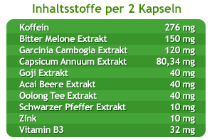 Die Garcinia Cambogia gehört zu den Zitrusfrüchten und enthält den Wirkstoff HCA. HCA wirkt aktiv gegen die Bildung von Fetten. Der Oolong Tee ist seit vielen Jahren in China begehrt und dient dazu die Fettanteile im Körper zu reduzieren. Zusätzlich kann dem Oolong Tee ein Koffeinanteil nachgewiesen werden, was wiederum die Fettverbrennung anregt.